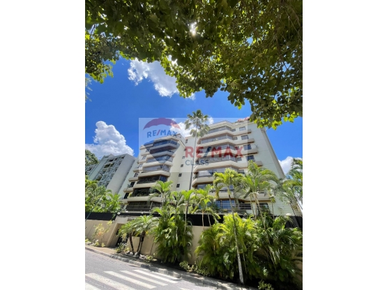 Cuenta con ascensor directo al apartamento, hall de entrada, sala - comedor separados, estudio, 3 habitaciones, (habitación Ppal. con baño y vestier) 3 baños, balcón y jardinería, cocina actualizada, área de lavandero, 3 puestos de estacionamiento techado, amplio maletero, salón de fiesta que se integra a los jardines.